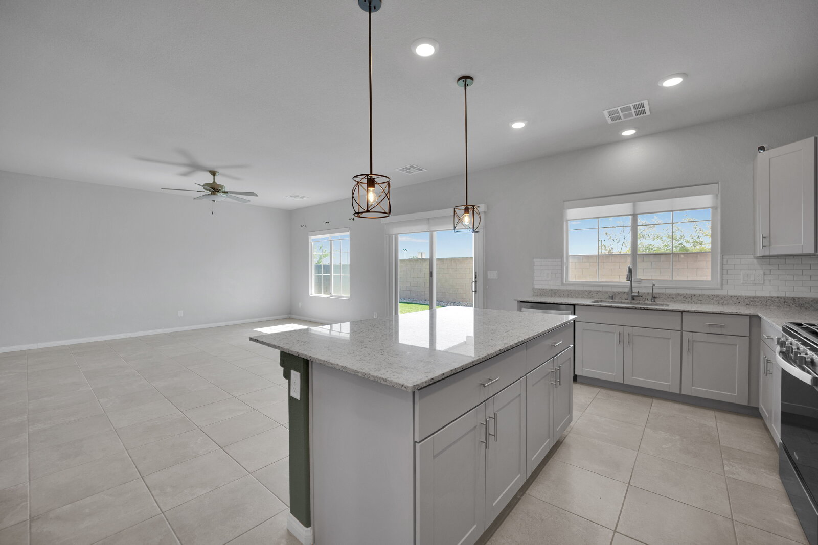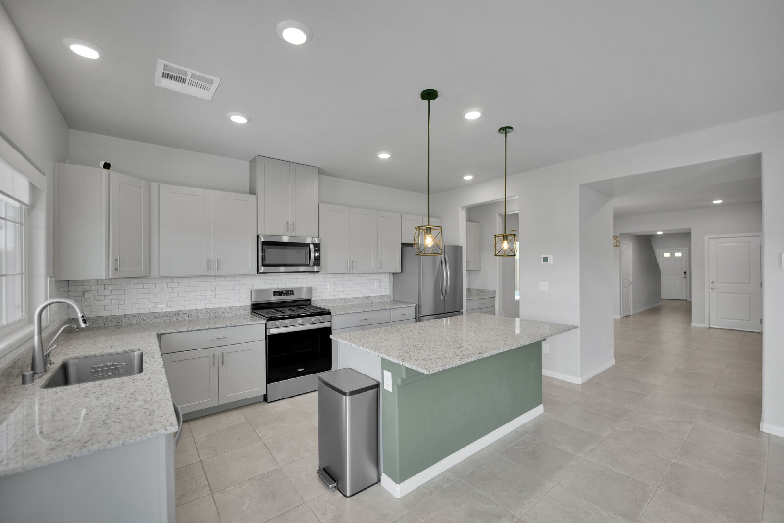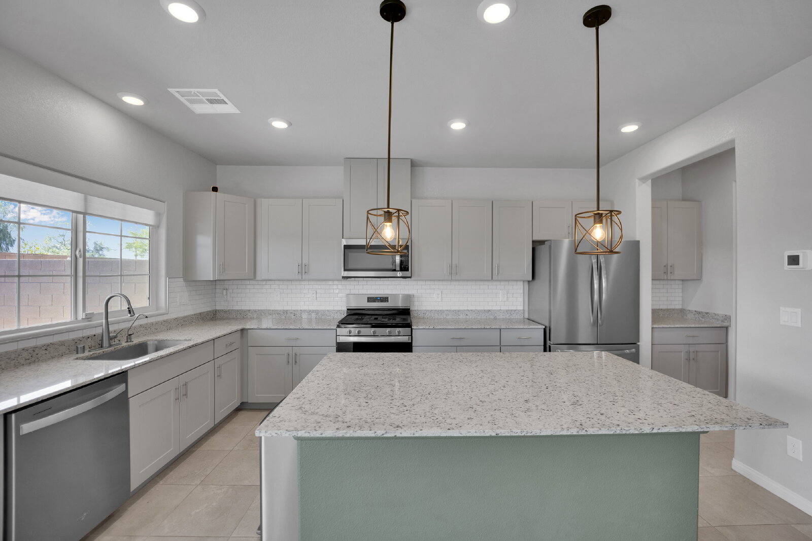 This stunning home features five spacious bedrooms and three full bathrooms, including a convenient downstairs bedroom and bathroom—perfect for a home office or for accommodating guests. The open-concept design creates an airy atmosphere throughout the space. The gorgeous kitchen offers ample counter space, a large island, and stainless steel appliances. Upstairs, you'll find a large loft that is perfect for use as a game room. Step outside to the beautiful yet low-maintenance backyard, which includes a spacious patio and synthetic grass, making outdoor living effortless year-round. Located in the Northwest, this home provides easy access to shopping, dining, entertainment, golf, parks, and the freeway for a quick commute. Did we forget to mention, this property has solar!!
